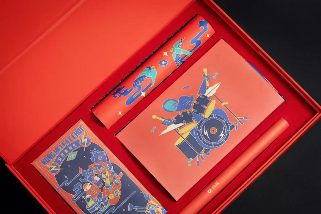 禮盒內(nèi)有一幅“有好事發(fā)生”掛布、一套春聯(lián),以及大小紅包和福字,更酷的是,禮盒采用折疊設(shè)計(jì),一秒變裝飾擺件儲(chǔ)物盒。