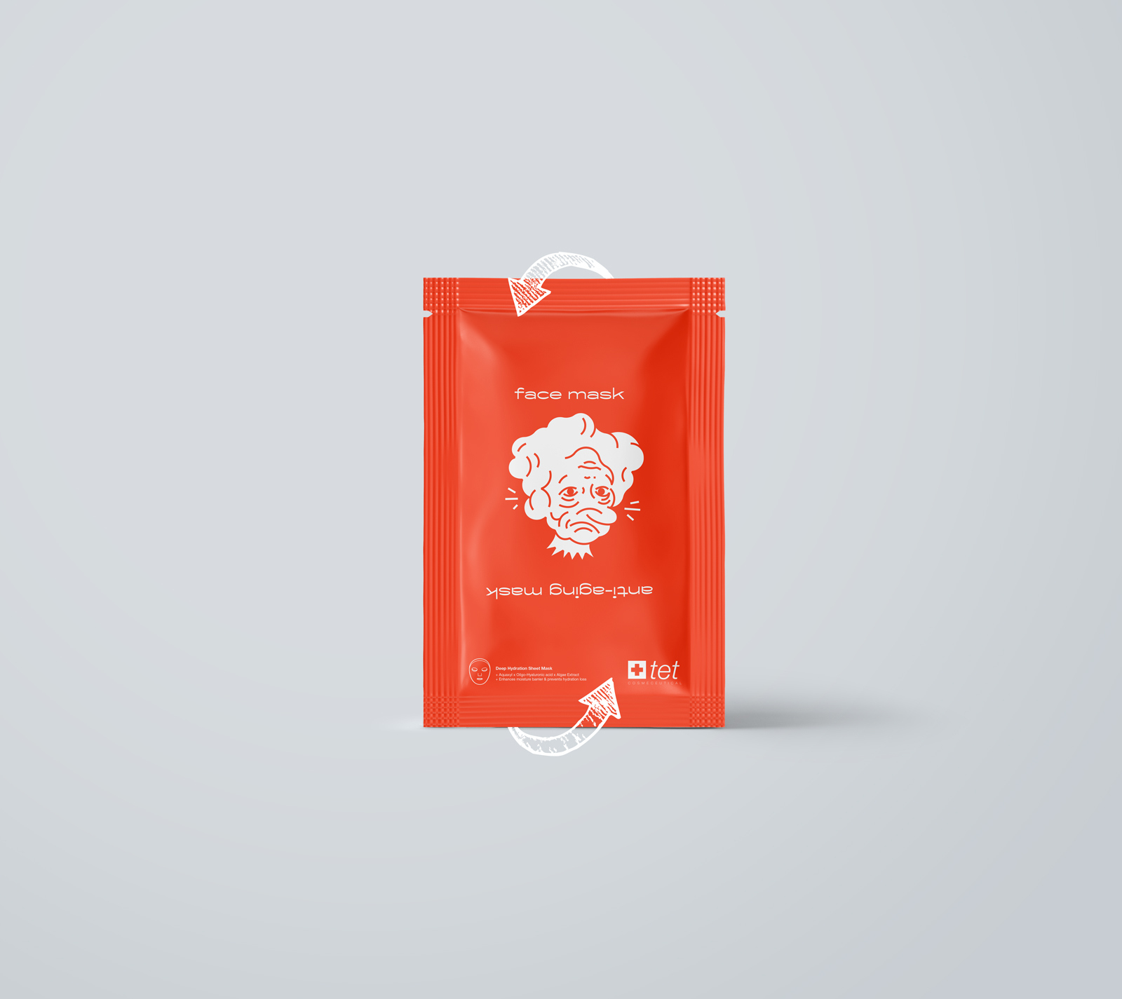 Anti-aging是一款抗衰老面膜,采用幽默風趣的表達手法將產品的特點清晰展現(xiàn)出來,將包裝的口袋翻轉過來,立刻把一個皺巴巴的老太太變成了一個年輕漂亮的女人,趣味性十足,抓住了人對有趣事物充滿好奇的心理。