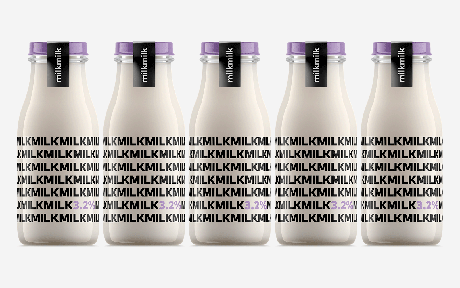 阿塞拜疆設計師Rahim Ismayil設計的牛奶包裝,設計師通過字體粗細來表現牛奶的脂肪含量。粗體字表示脂肪含量高,而細體字則表示脂肪含量低。通過瓶蓋顏色和極簡外觀讓人有一種新鮮直觀的感覺。讓人在遠處看到,想走近拿起來,進一步了解情況的沖動。