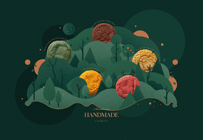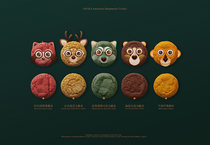 Anastasia納斯塔是一家專注高端手工曲奇的甜品品牌,創(chuàng)始人是一位美麗優(yōu)雅的女性,她希望把天然優(yōu)質(zhì)的產(chǎn)品理念融入品牌視覺,讓購買與品嘗它的顧客能感受到產(chǎn)品的心意與生活的詩意。用味蕾喚醒森林的手工曲奇,赤橙黃綠棕,食材的天然色彩打破視覺邊界,變身可愛的森林精靈,讓天然的美味伴著森林的微風(fēng),拂過每一個(gè)陽光耀眼的日子。創(chuàng)新設(shè)計(jì)的隨身小食盒,讓你將有趣的森林精靈盡收囊中。